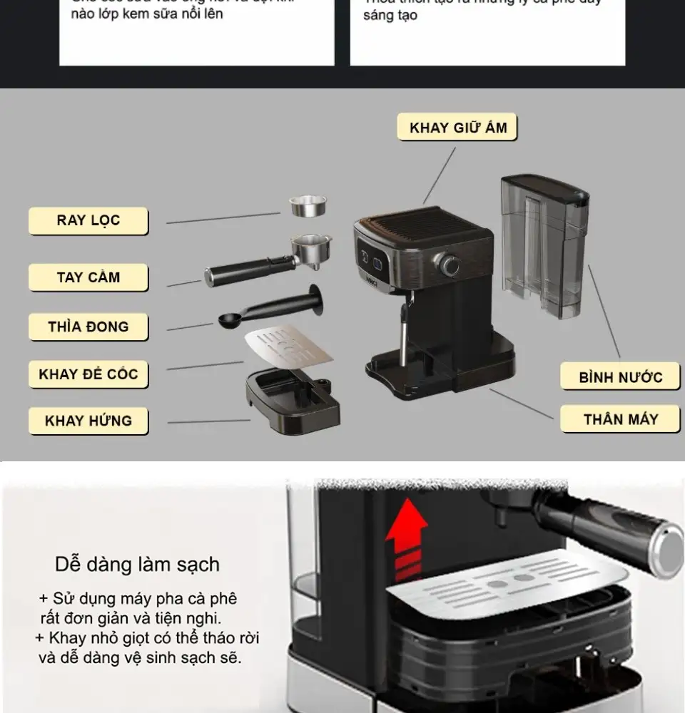 - Vòi đánh sữa chuyên nghiệp: Cho phép đánh tạo bọt sữa mịn và hoàn hảo, phục vụ nhu cầu đa dạng của người dùng.