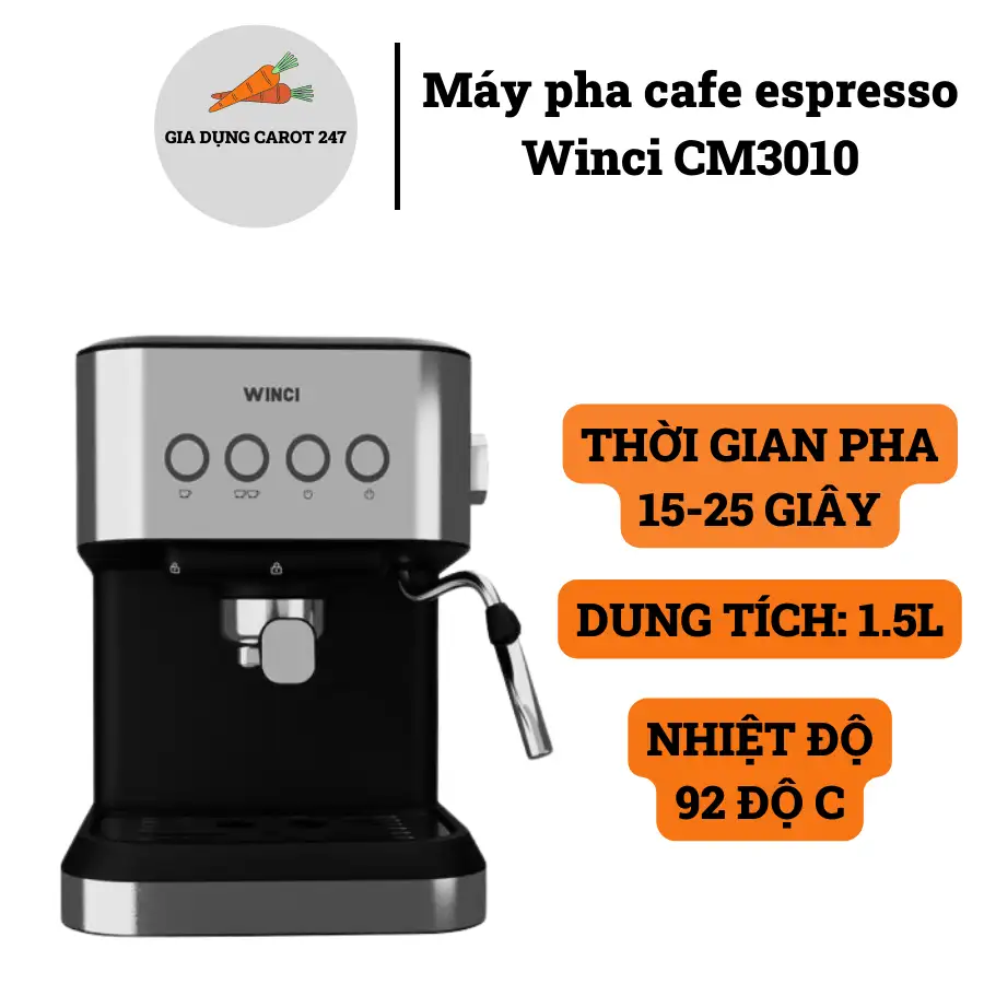 Với thiết kế hiện đại, các tính năng vượt trội và khả năng pha chế đa dạng, máy pha cà phê espresso Winci CM3000 là sự lựa chọn lý tưởng cho những người yêu thích cà phê sành điệu muốn thưởng thức hương vị cà phê hoàn hảo tại nhà.